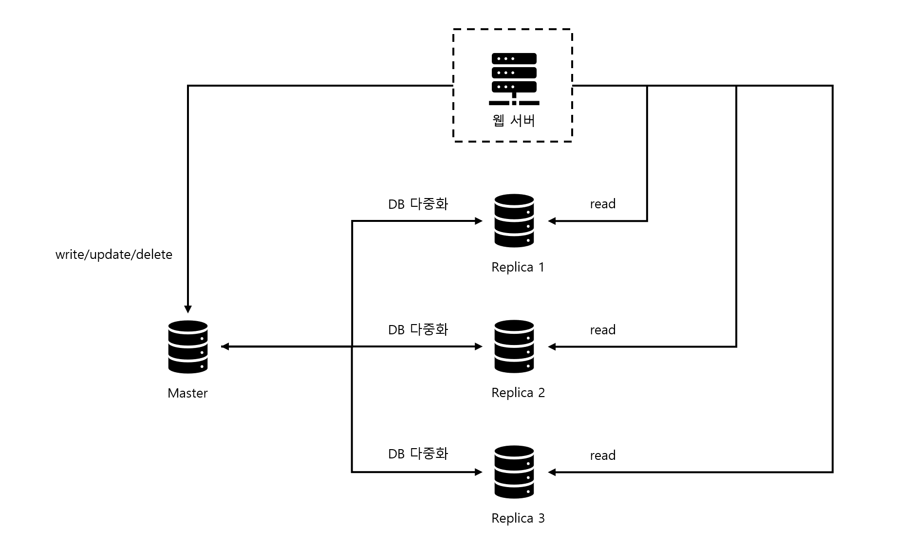 데이터에 변화를 주는 insert, update, delete 등의 연산은 master 데이터베이스에서만 가능하고 replica 데이터베이스에서 read 연산을 수행한다.