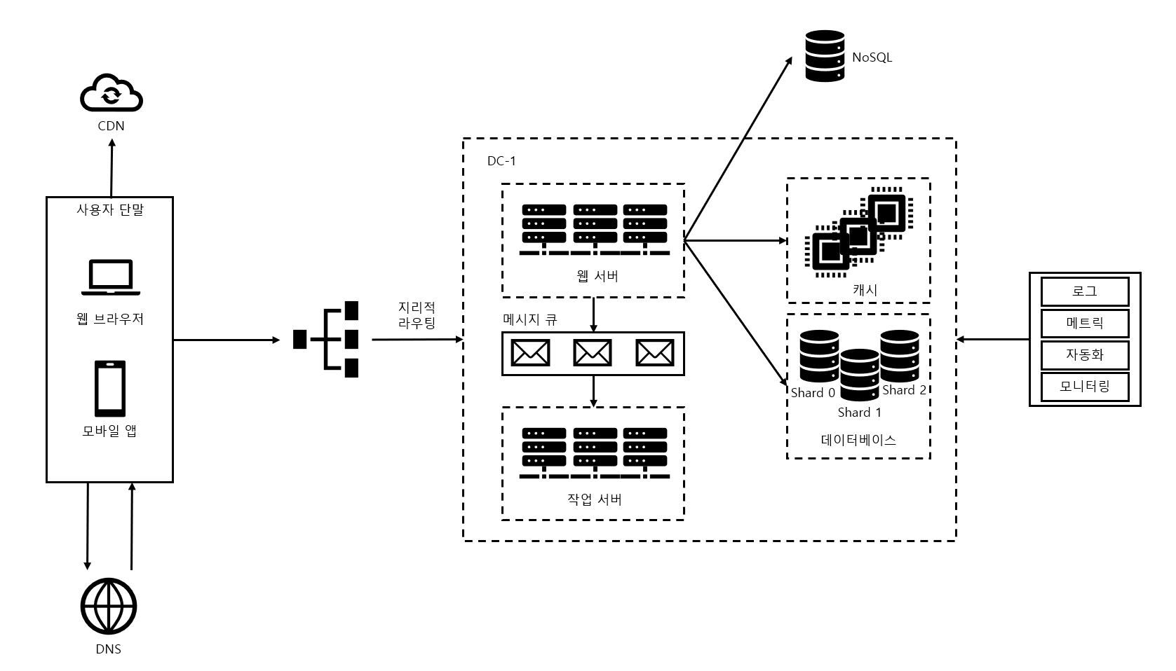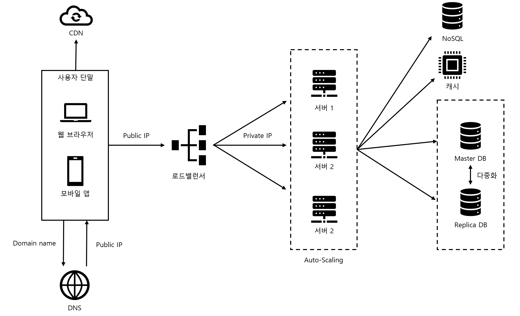 달라진 부분은 정적 콘텐츠를 웹 서버가 아닌 CDN을 통해 제공하는 것과 캐시를 통해 DB로의 트래픽을 줄였다는 점이다.
