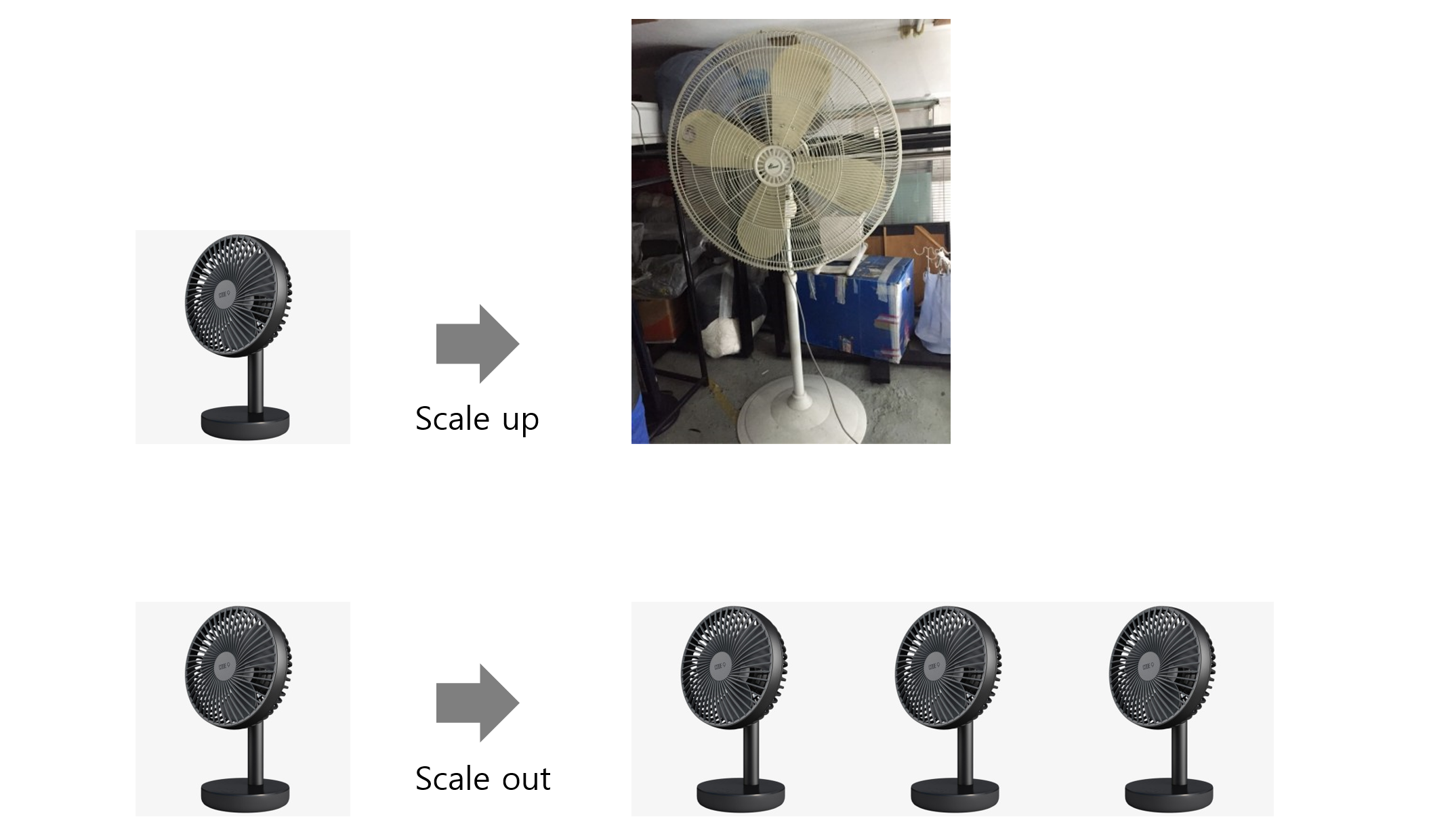 따라서 대규모 애플리케이션에는 수평적 규모 확장(Scale out)이 더 적절한 방법이다.