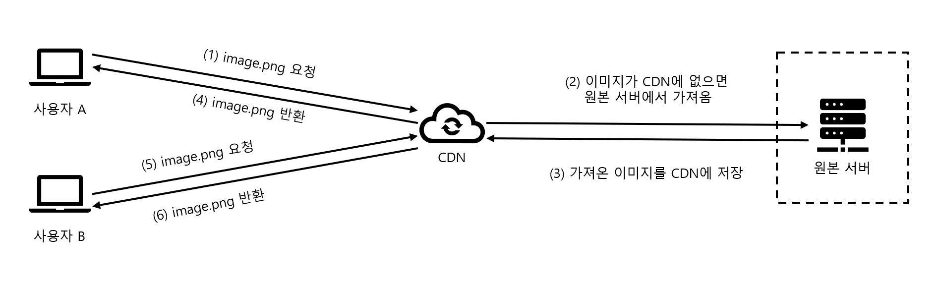 이때 원본 서버는 웹 서버일 수도 있고 AWS S3와 같은 클라우드 저장소일 수도 있다.