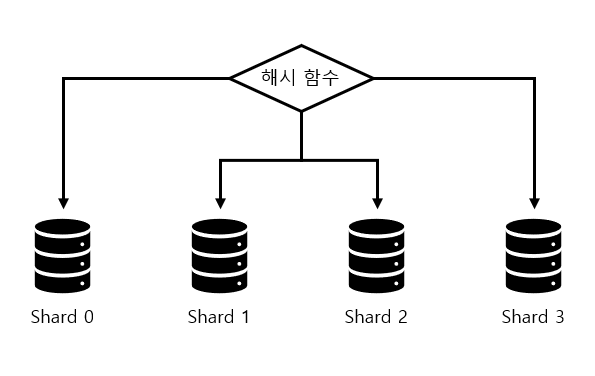 해시 함수의 결과에 해당하는 샤드에 데이터를 저장하는 방식이다.