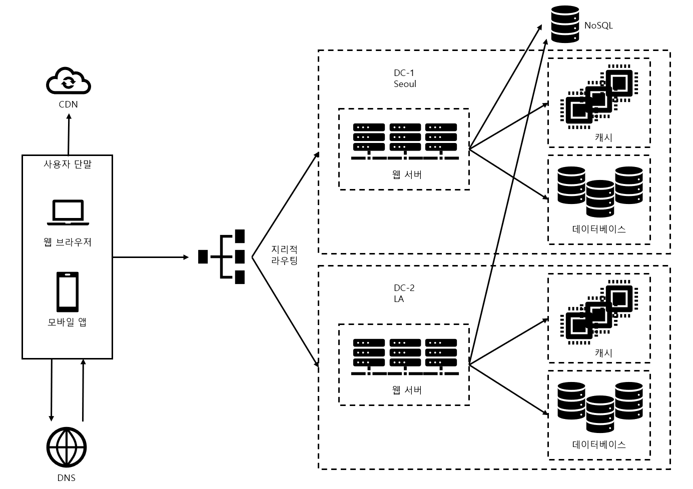만약 이제 전 세계를 대상으로 서비스하는 상황이 되었다고 가정하면, 여러 데이터 센터를 운영해야 한다.