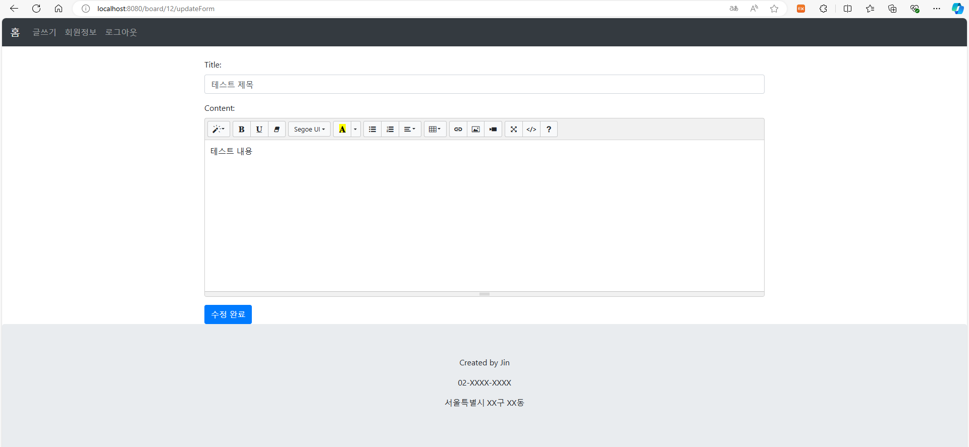수정 페이지의 jsp 코드는 작성 페이지와 거의 동일하다.
