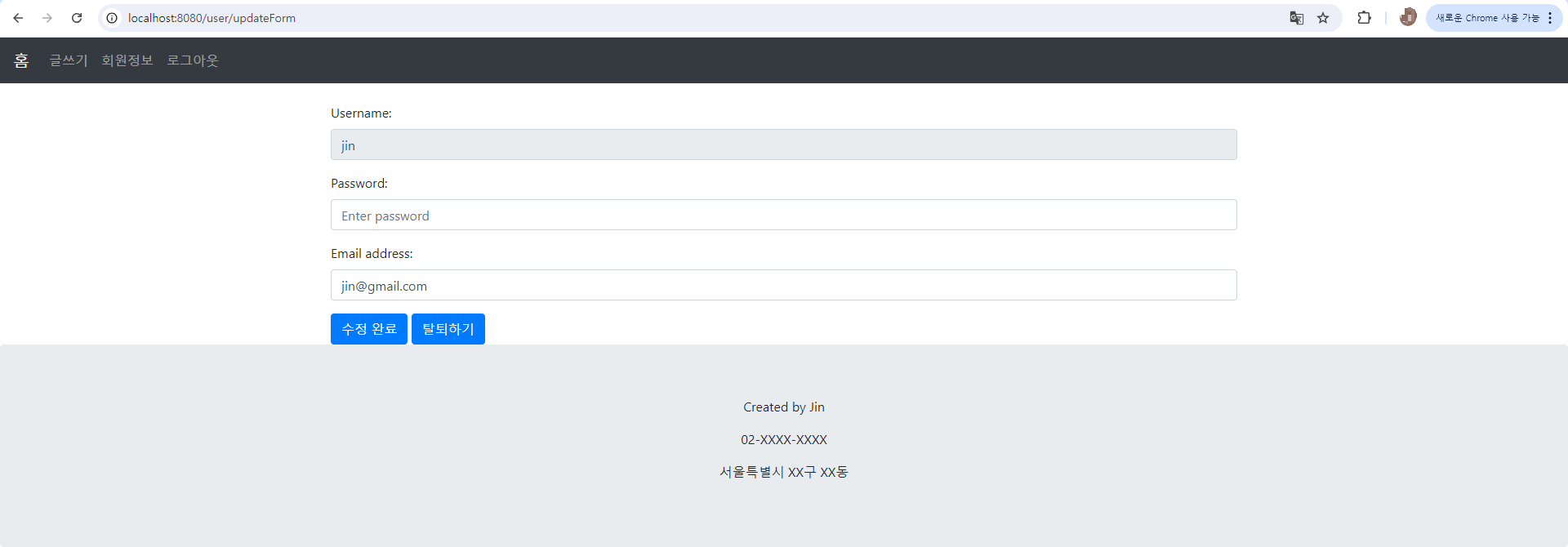 [Spring Boot] 게시판 프로젝트 - 04. 회원정보 수정 본문