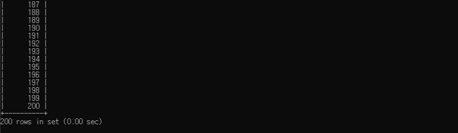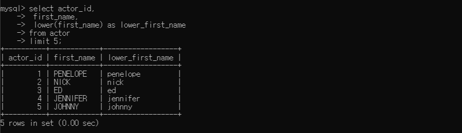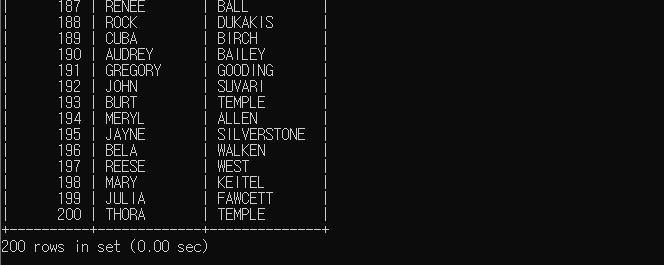 actor 테이블에서 200개의 행이 조회되었다.