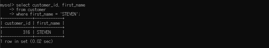 아래 쿼리는 이름이 STEVEN인 고객만 조회하는 쿼리이다.