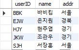 usertbl 테이블에서 일부를 복사하여 member1 테이블을 만들었다.